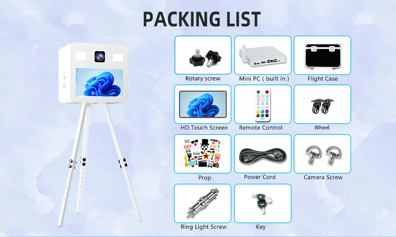 | Specification | 70*69*51cm | Dslr Photo Booth | [‘White’, ‘Black’] |