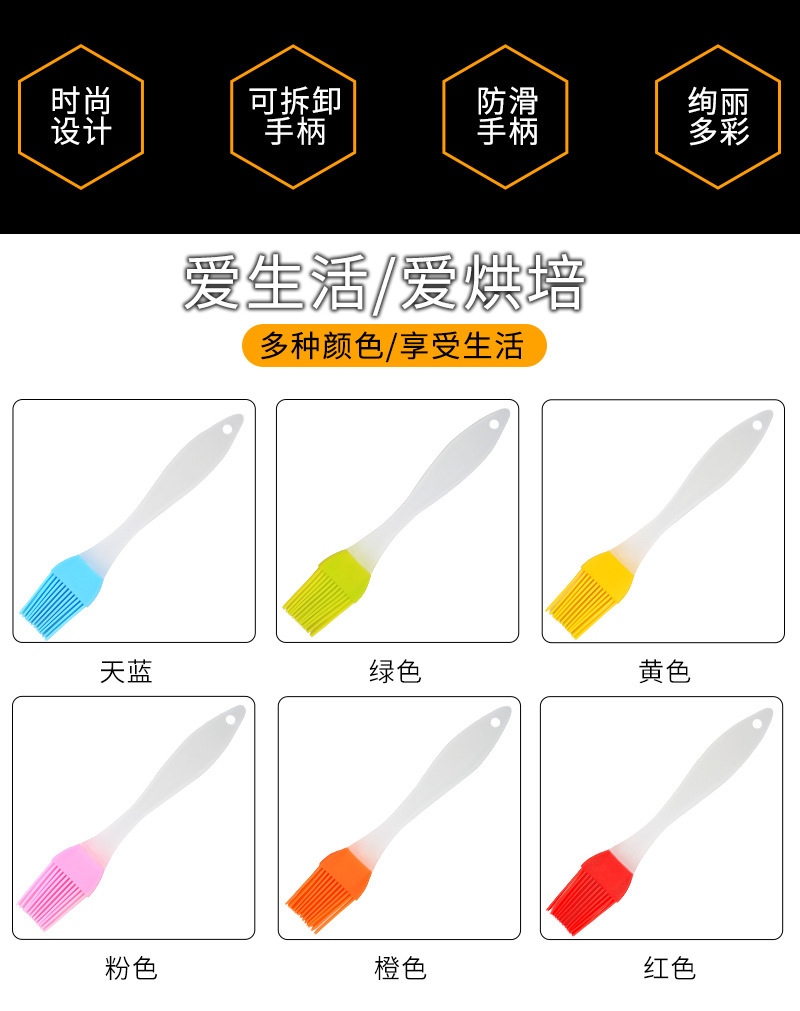 Silicone oil brush, kitchen pancake, edible baking pancake brush, household high temperature resistant, non shedding hair, barbecue silicone brush