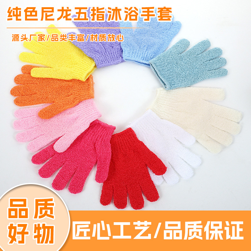 Solid colored nylon five finger gloves, exfoliating bath, rubbing bath gloves, household bubble net bath products, bath towels