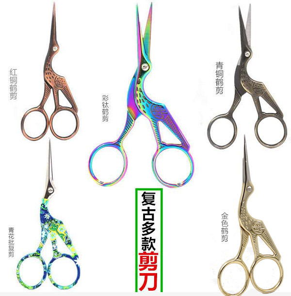 Spot stainless steel gold-plated crane scissors, vintage dragon and phoenix scissors, yarn scissors, tea cross embroidery thread head scissors wholesale