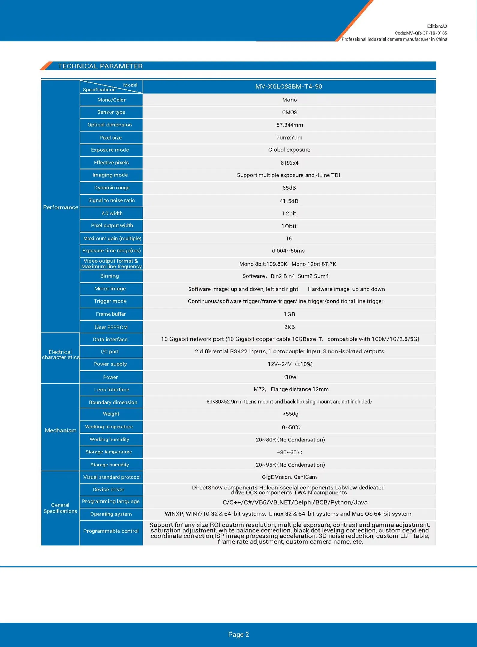 | Model NO. | MV-XGLC83BM | Lens | Fixed Focal Length Lens |
