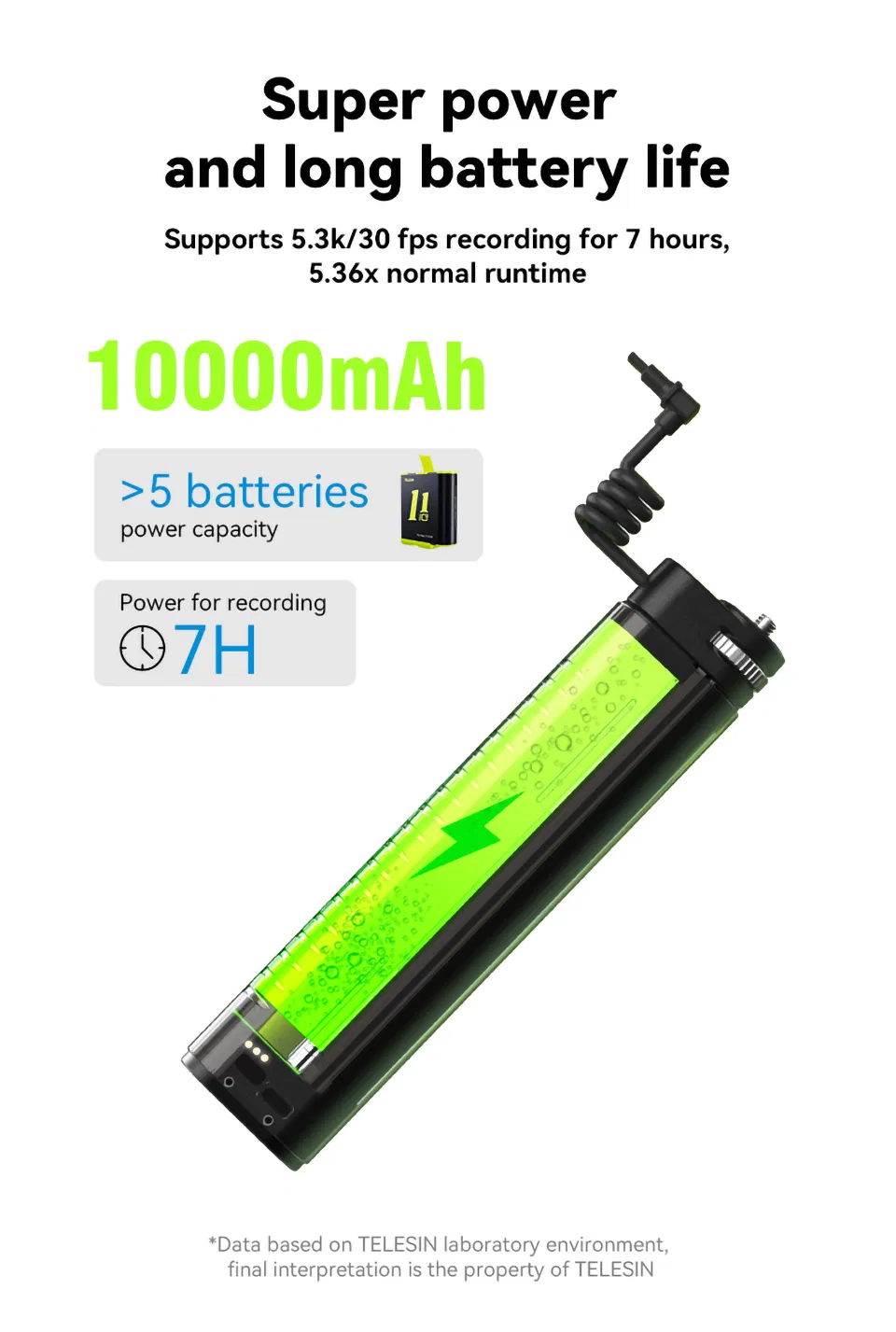 Telesin Te-Css-001 10000mAh Power Bank Selfie Stick Charging Handle Grip for Gopro / Sports Camera / Smart Phone