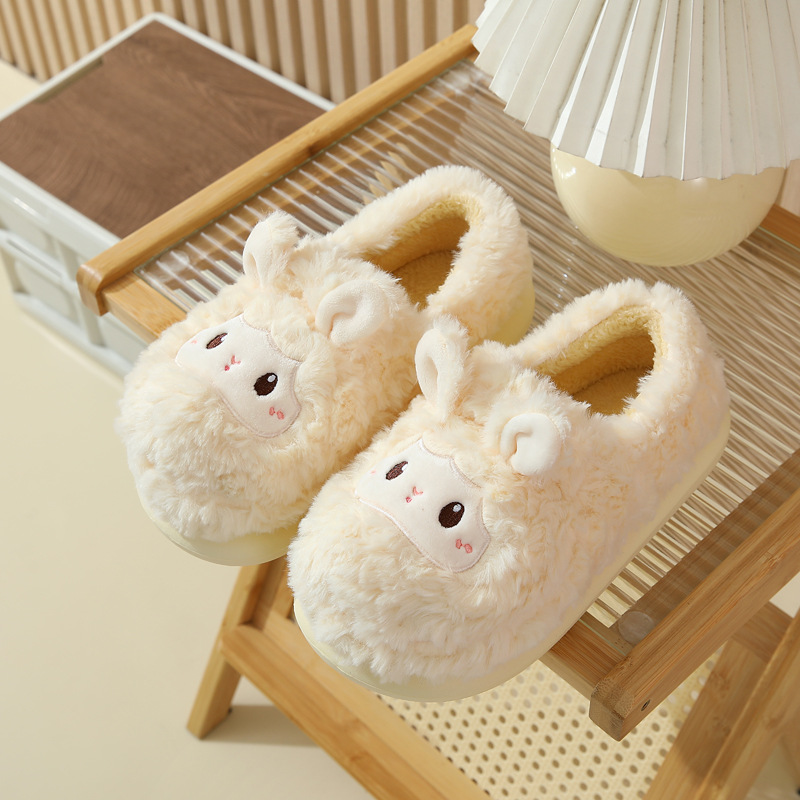 Thick soled bag heel cotton shoes, new winter style for girls, comfortable home, non slip indoor, warm home, cute plush cotton slippers