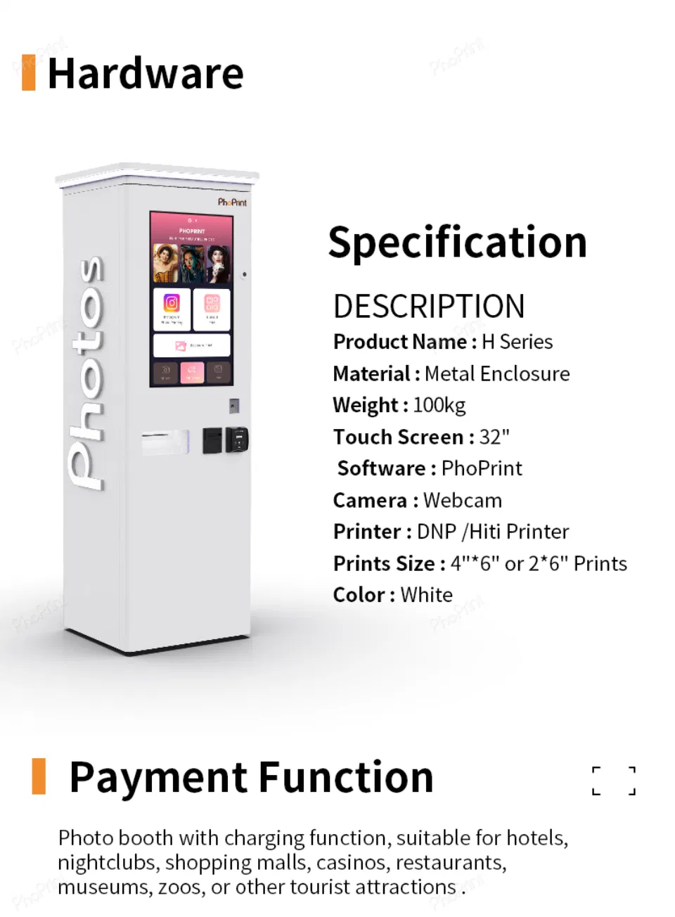 | Model NO. | H Series | Type | Instant Photo Booth |