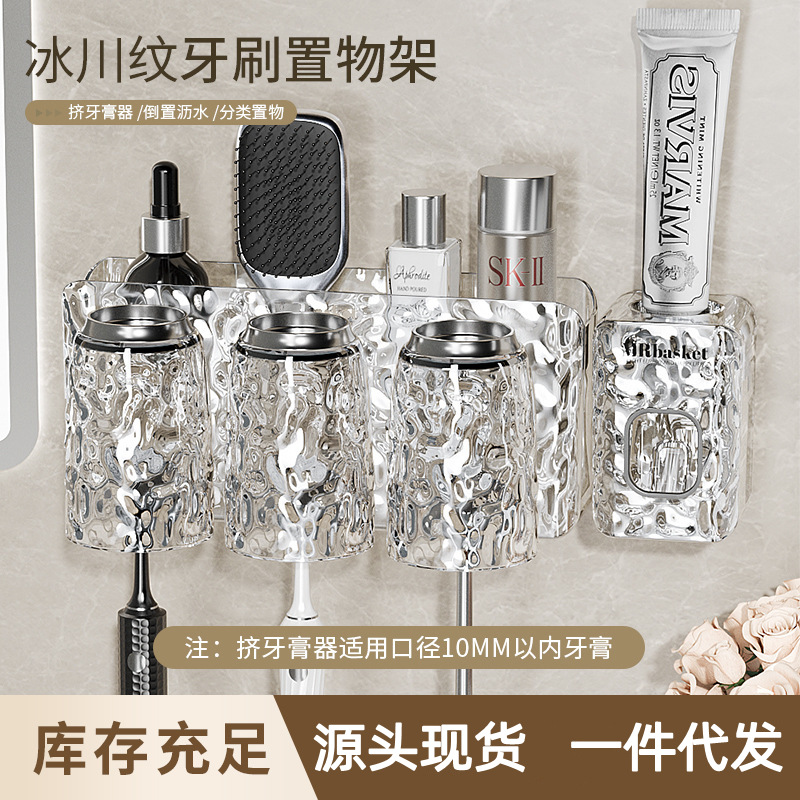 Transparent toothbrush holder, non perforated wall mounted dental ware, toothpaste cup, household bathroom mouthwash cup, toothbrush holder