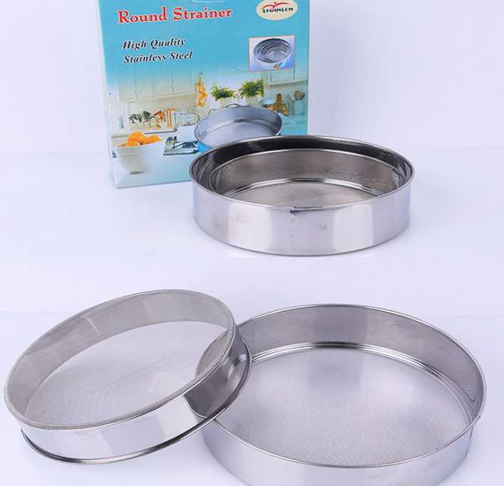 Two piece set of stainless steel filter screen, roller bucket flour sieve, handheld circular flour sieve, distribution and wholesale