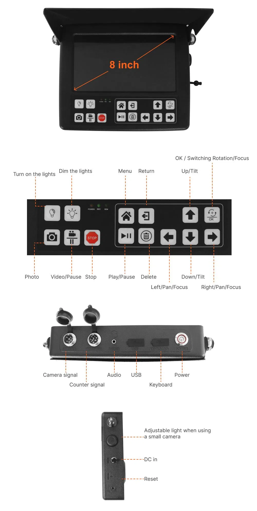 | Waterproof | IP68 | Monitor | 8 Inch Monitor |