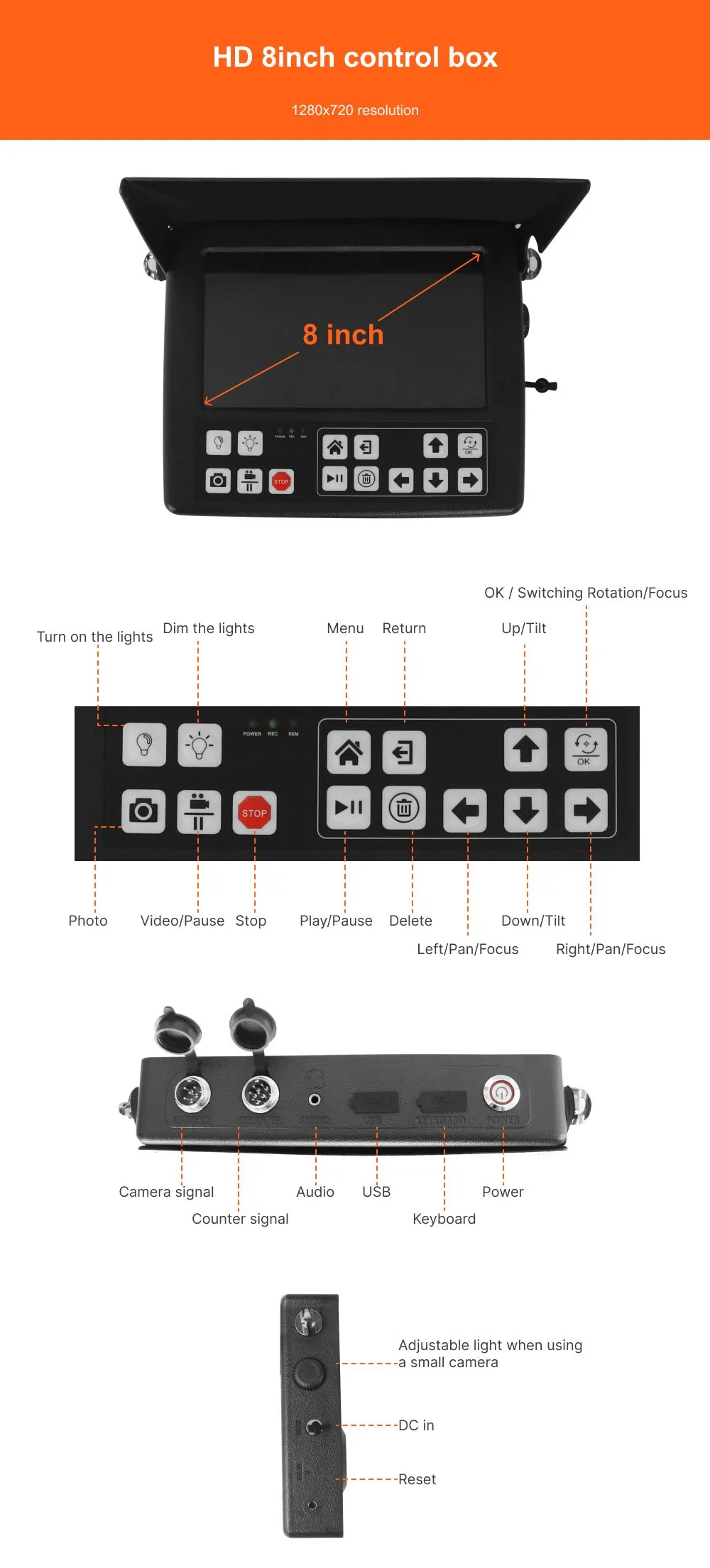 | Resolution | 1920X1080 | Monitor | 8 Inch IPS Monitor |