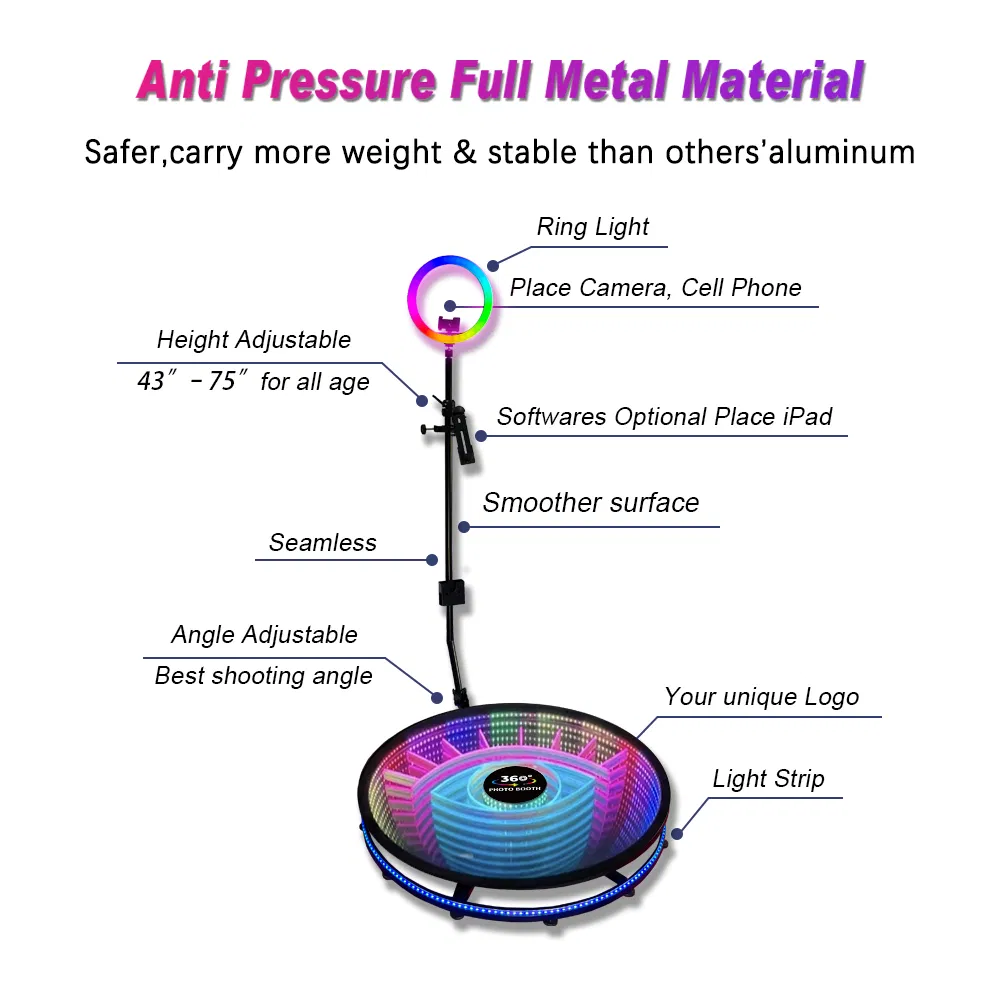 Wedding Party Automatic Adjustable Selfie Camera iPad 360 Degree Photo Booth Glass 26.8 Inch