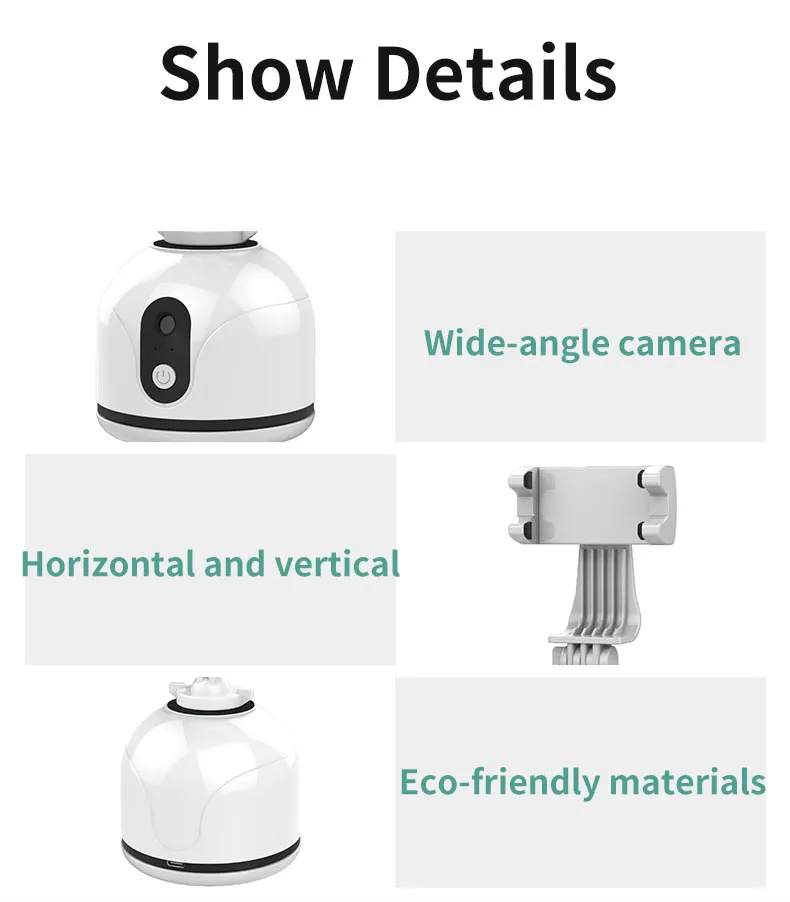 | Feature | Portable, Flexible, 360 Ai Tracking Rotation | Charger | USB Charging Type C 5V1a |