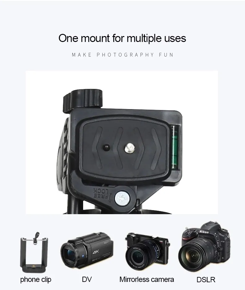 | Tripods Use | Digital Camera, Video Camera, Phone | Tripods Material | Aluminum |
