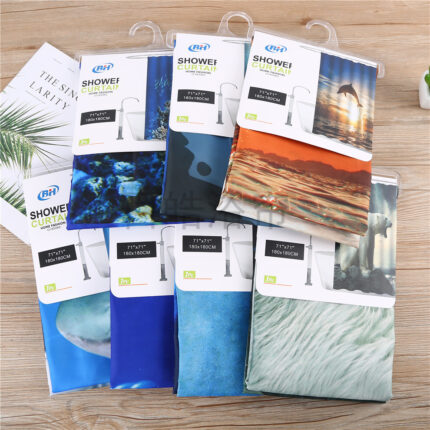 [Baihao] Cross border waterproof shower curtain, digital printing shower curtain, waterproof belt hook, polyester bathroom curtain combination